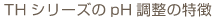 THシリーズは、溶出速度の異なる複数の石灰を混ぜpH調整を行っているため、pHの調整反応が緩やかですので、安心してご使用できます。また、THシリーズは、カナダでpH調整を行っているため、日本に輸入されるまでの期間に少しずつpHが調整され、使用時の加水による急激なpH上昇がおき難くなっています。苗床用にご使用の場合は散水後すぐにお使いいただけますが、播種床(芽出し)にご使用の場合は、散水後1日程度経ってからご使用下さい。ハウス栽培にご使用いただく場合、pH 5.0〜6.0の状態が栽培開始から90日間程度安定するように調整してあります。ただし、散水や施肥方法により若干の変動がありますのでご注意下さい。また、屋外での使用では降雨によりpHの低下が早まる傾向があります。また、ご使用に際しては、十分散水してから播種や植付を行って下さい。適切な栽培環境(散水管理・施肥管理)においてご使用いただく場合には、作物の栽培に適したpHが維持できます。